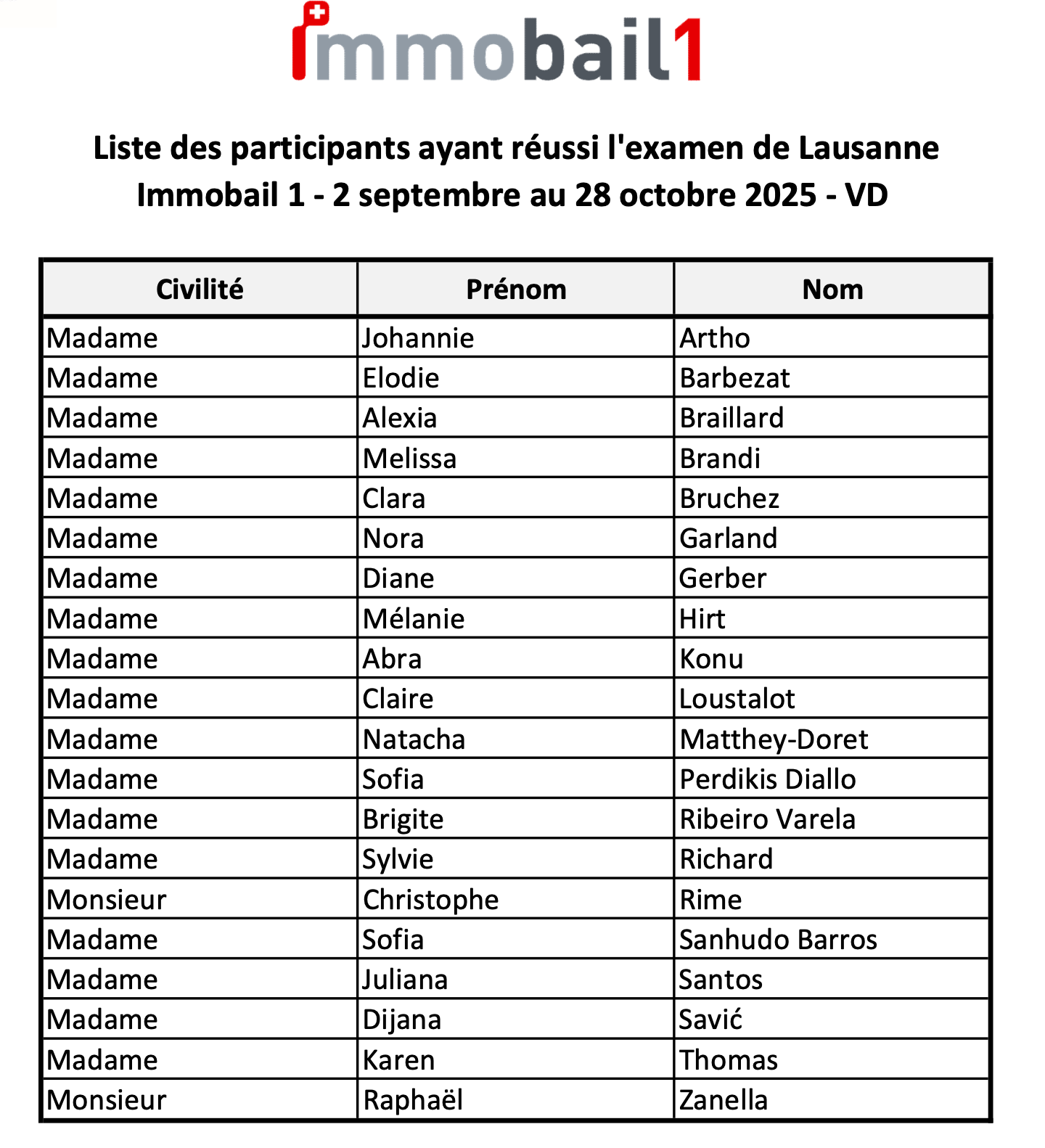 20 participant(e)s ayant suivi la formation ImmoPPE 1 en septembre-octobre 2025 obtiennent leur certification avec succès.