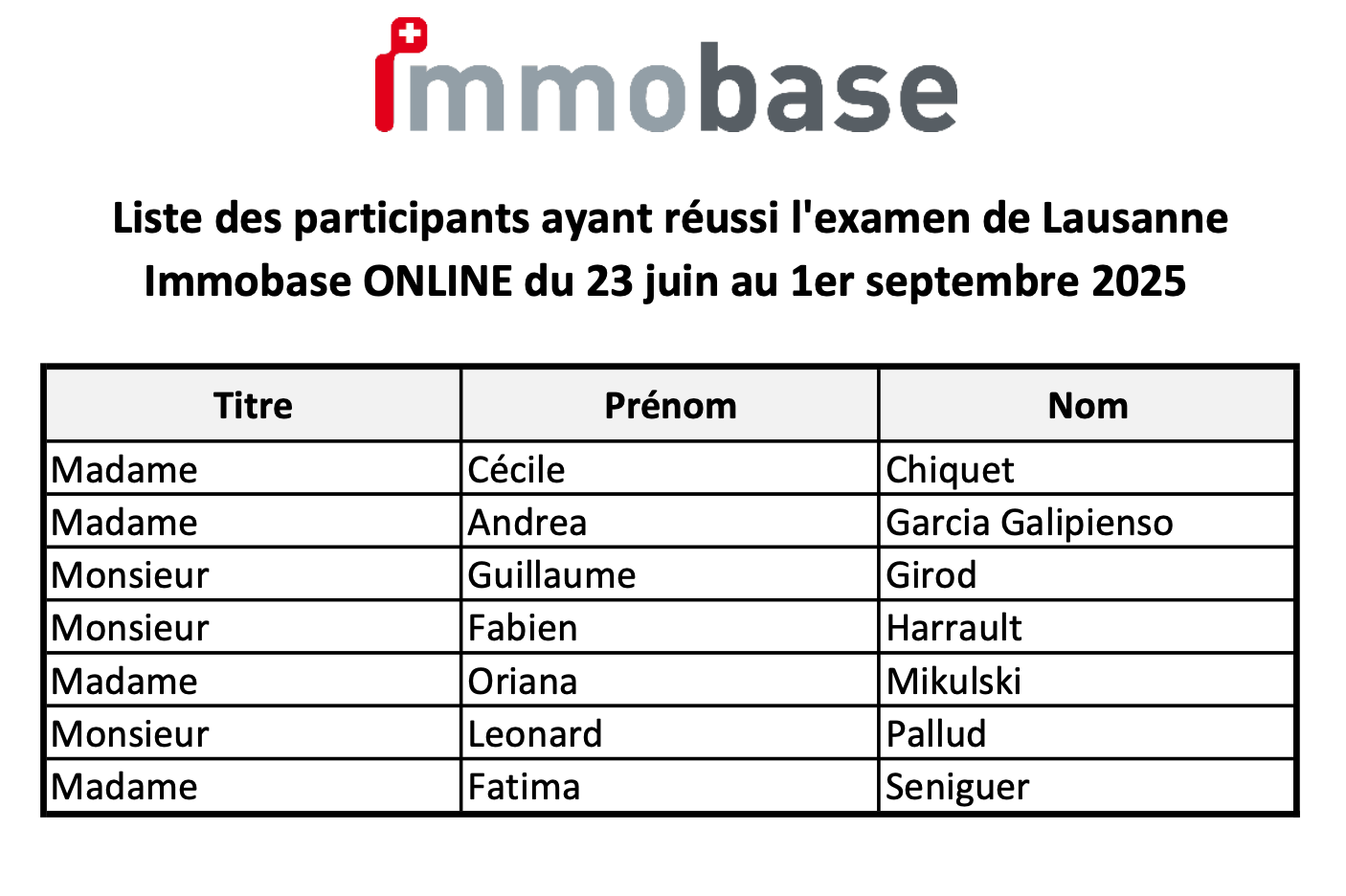 7 participant(e)s ayant suivi la formation Immobase online de juin à septembre 2025 obtiennent leur certification avec succès.