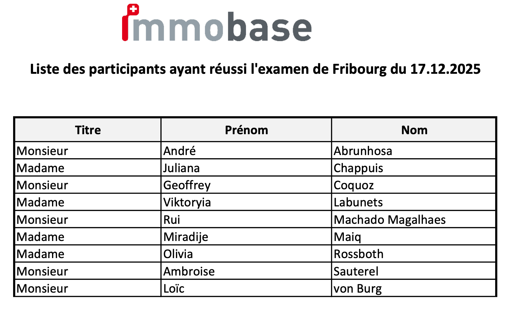 9 participant(e)s ayant suivi la formation Immobase online de septembre à décembre 2025 obtiennent leur certification avec succès.