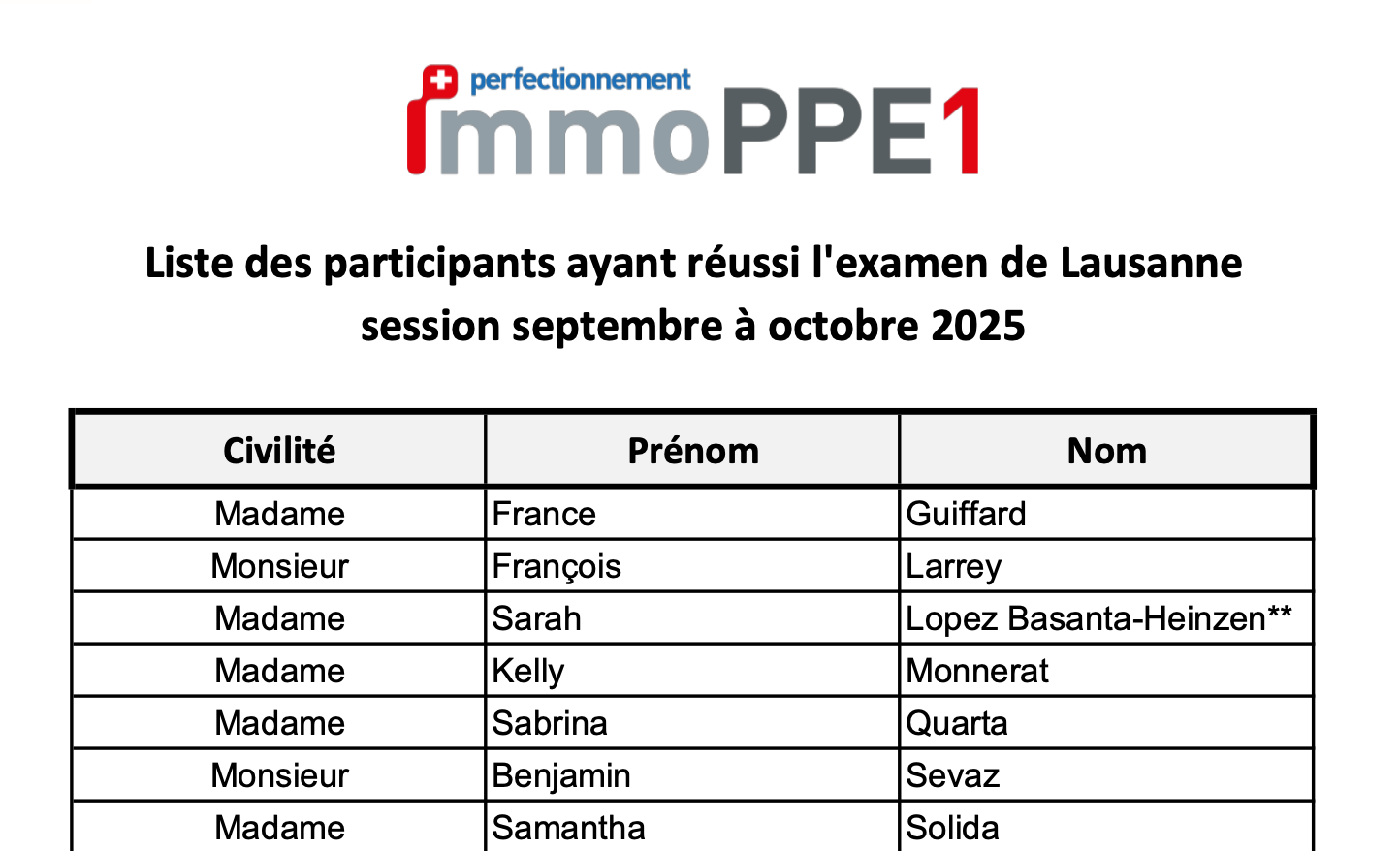 7 participant(e)s ayant suivi la formation ImmoPPE 1 en septembre-octobre 2025 obtiennent leur certification avec succès.