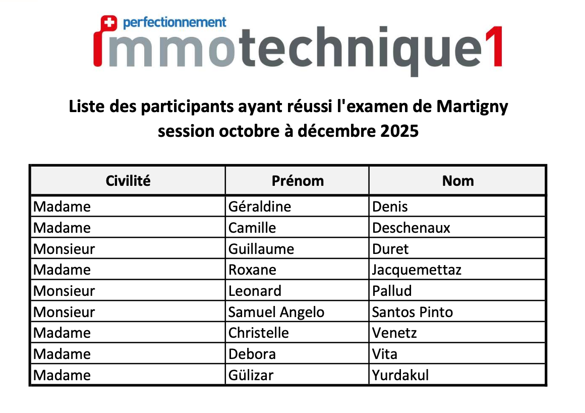 9 participant(e)s ayant suivi la formation Immotechnique 1 d’octobre à décembre obtiennent leur certification avec succès.